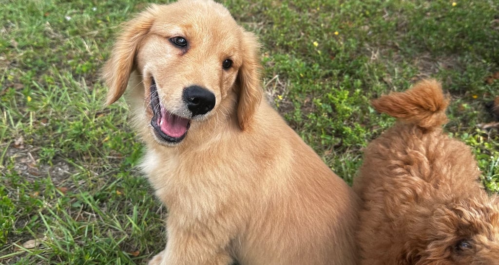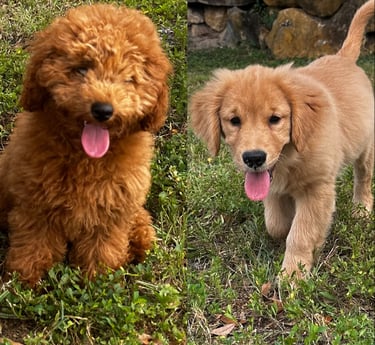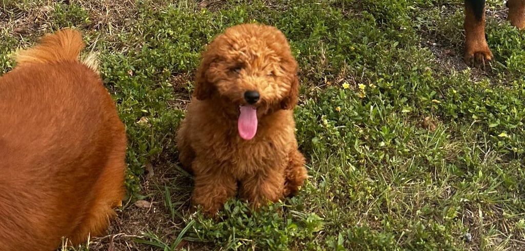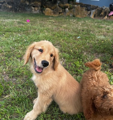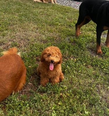 Amara, a dark Golden Doodle (F1 BB), shares that same playful, affectionate spirit, making her a joy to be around.