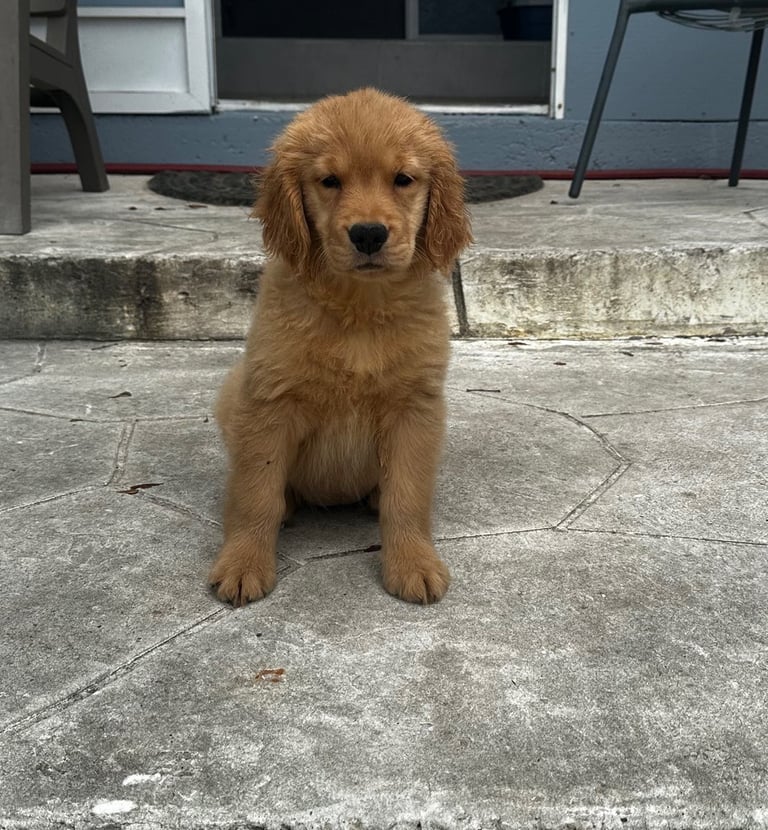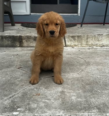 Amy is a beautiful dark-coated Golden Retriever, full of playful energy and a loving, sweet nature.