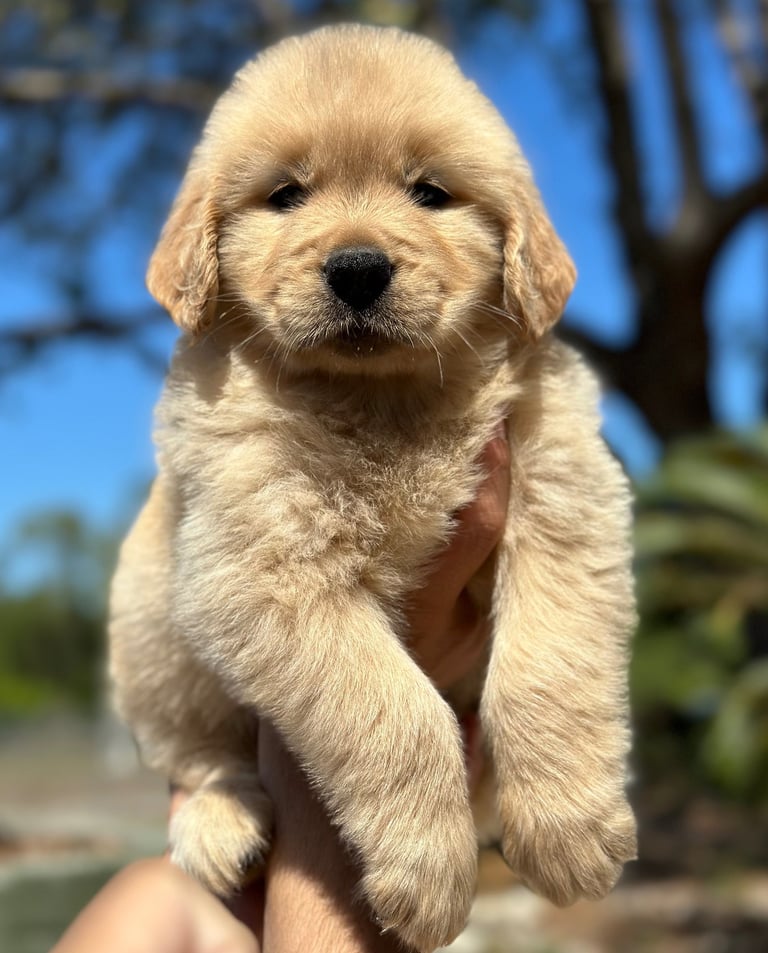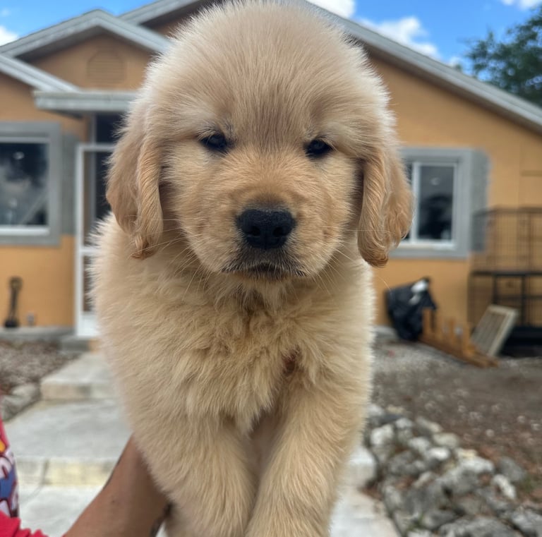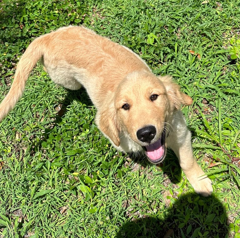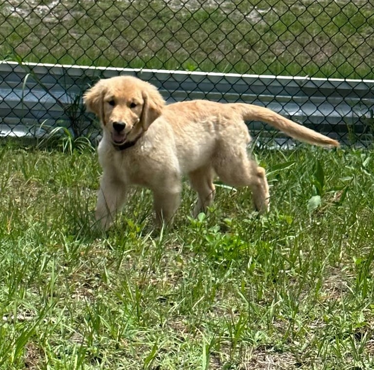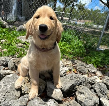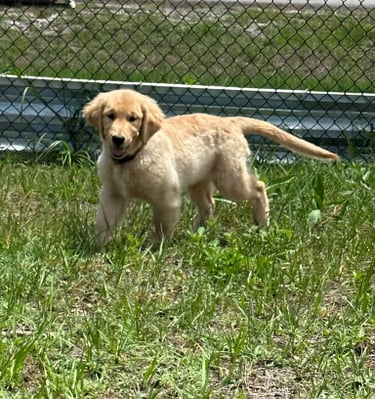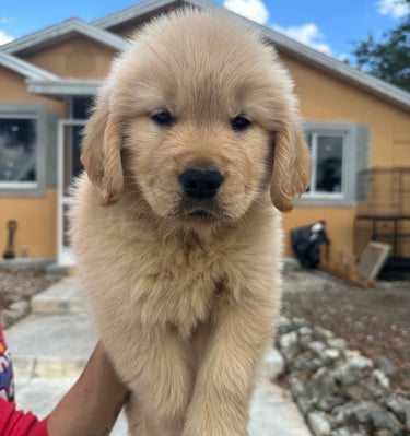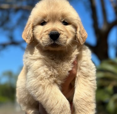 She’s a short and stocky Golden with a strong build, thick paws, and the sweetest temperament you could ask for. Kitana loves to play, explore, and share affection with everyone she meets. Her calm and loving personality makes her an incredible companion and an amazing example of the quality we strive for in our Pups