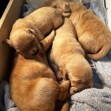 We are excited to share that we currently have five beautiful Golden Retriever puppies available! These little ones are full of personality, playful energy, and love, and they’re ready to find their forever homes. Each puppy comes with everything you need to start your journey together, from CKC papers to vaccinations.